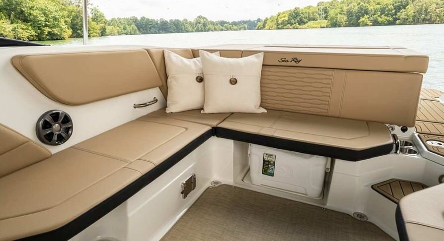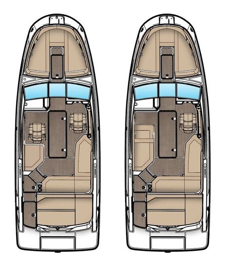 You'll find ample and convenient hidden storage throughout the boat. Plus, a spacious and smart cockpit bench seat includes dedicated cooler storage beneath. The portside offers an optional three-position lounger.