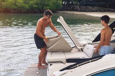 The SLX 260 has been thoughtfully designed to maximize space. The cockpit’s updated layout includes L-shaped bench seating with deeper seats to promote ergonomics and comfort. Blending seamlessly, convenient storage has been incorporated throughout such as the enlarged ski compartment in the cockpit floor and transom locker for storing gear, floating water mats and inflatables.
