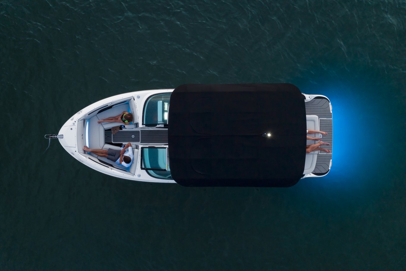 With LED lights and courtesy lighting, there’s more to enjoy aboard the SLX 260 after the sun goes down. Gaze at the stars while sharing refreshments and listening to music on the standard Fusion® Apollo™ audio system. Select the Lighting bundle offering LED RGB-W color-changing lighting for a burst of color perfect for any occasion or celebration out on the water. An LED light that projects the Sea Ray logo onto the cockpit floor is also available with Lighting bundle and Power Tower additions.