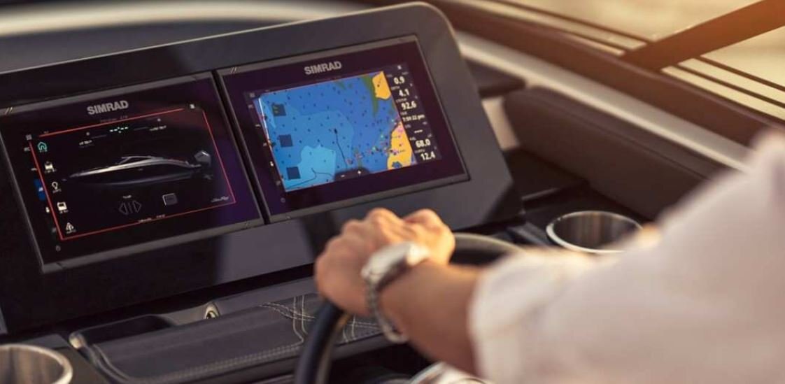 For simplified captaining, the helm is equipped with a standard Dual Digital Dash™ featuring 9″ Simrad® touchscreen displays with Mercury Marine® SmartCraft® Connect, Active Trim control & monitoring and CZone® digital switching. As part of the Entertainment bundle, the helm can be upgraded with an inductive charging station.