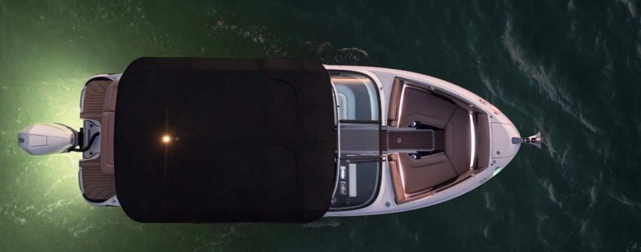 The next-generation optional Power Tower lowers and raises with the touch of a button. The aft sunshade can be extended over the transom, and a bow shade can also be installed for extended sun coverage.