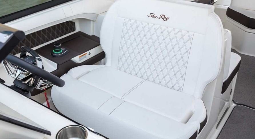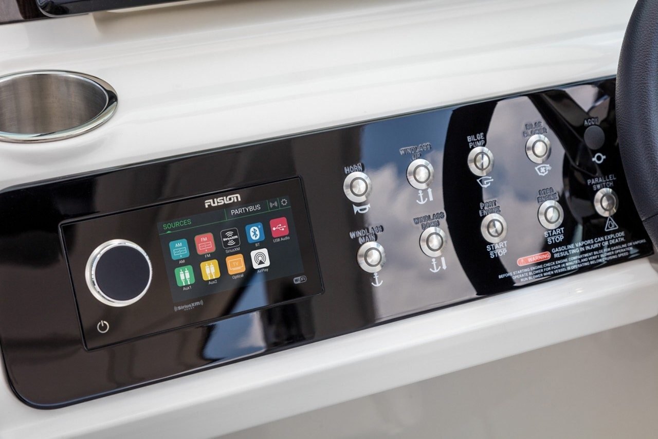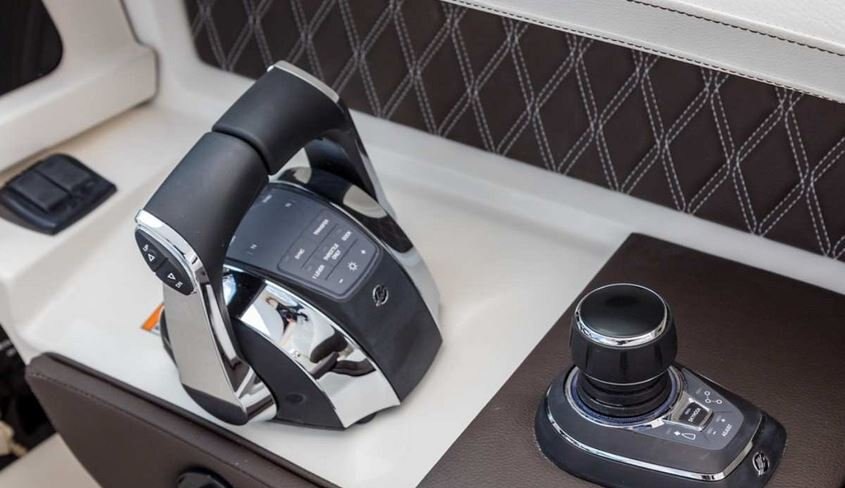 Arrive to the docks and maneuver with ease with Mercury's Joystick Piloting system. The throttle and shift lever is a SmartCraft Digital Throttle and Shift (DTS) system with a trim switch and ignition cutout switch.