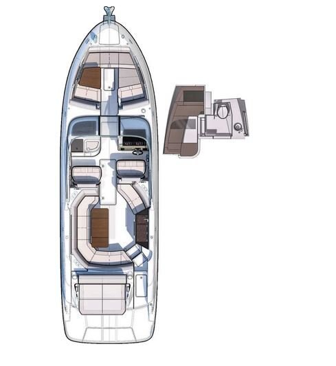 Best-In-Class seat layout includes seating for (Yacht Certified), centralized in a social cockpit area unrivaled in this model class.
