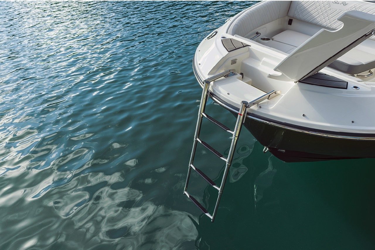 Easily transition between the deck and the water with the deck-mounted concealed, telescopic ladder and optional submersible swim step.