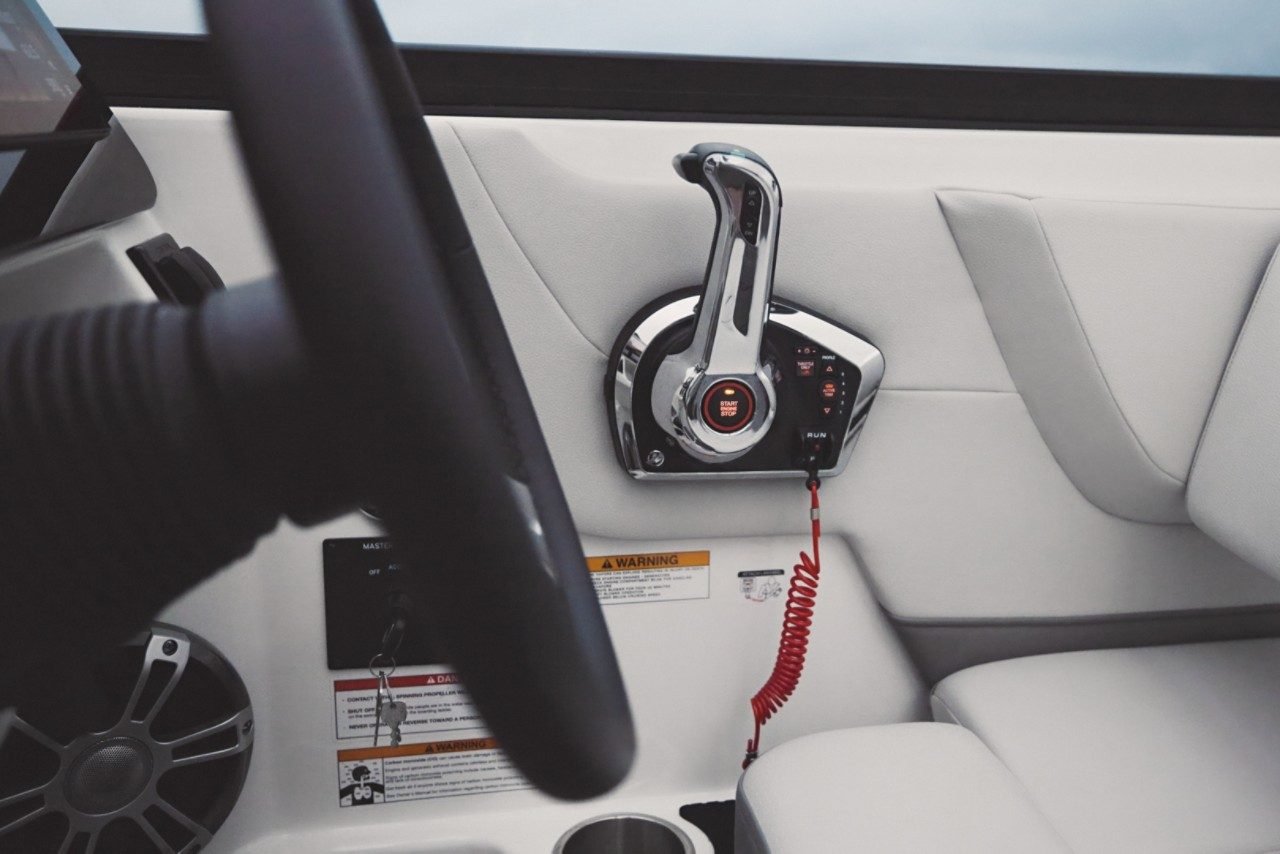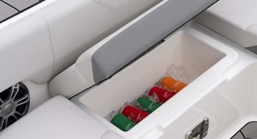 Cleverly designed niches for your cooler and watersports gear gives you that oh-so- satisfying feeling of everything fitting neatly in its place. The ample starboard storage space beneath the helm can also be upgraded to include a head.