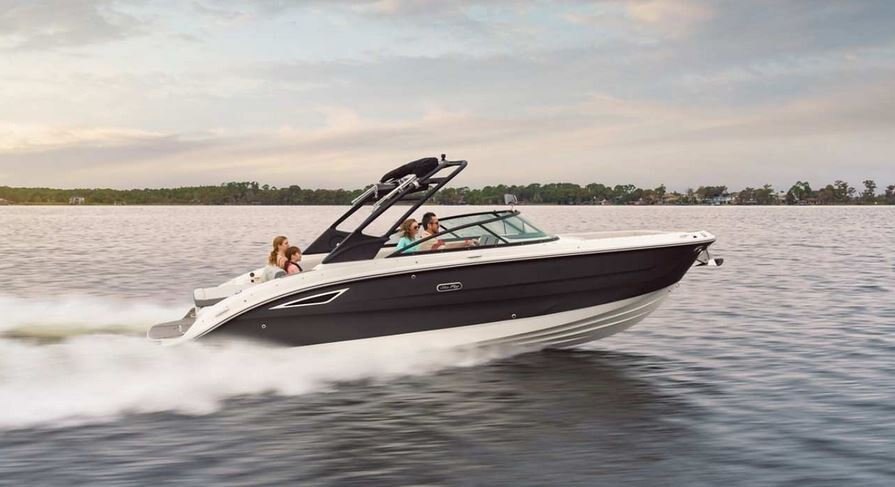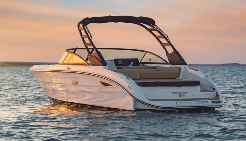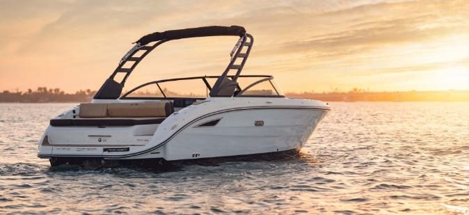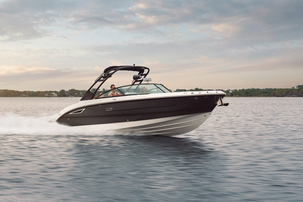 The SDX 270 reflects a modern, sporty appearance with its sleek, curved windshield and showcases Sea Ray’s design DNA in the distinctively sculpted hull.