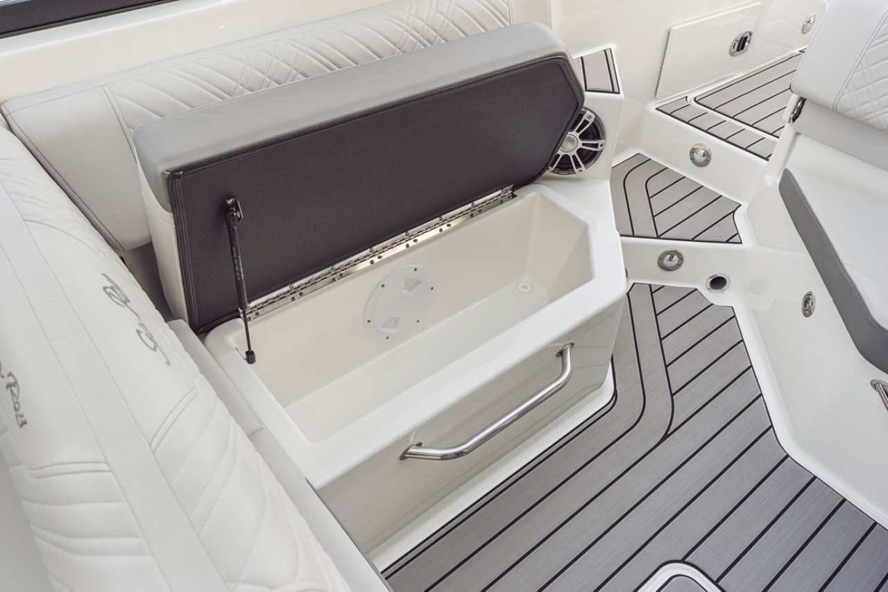 Never wonder if you’ll have room for what matters. This outboard model has storage throughout the vessel for personal items, safety and marine sports equipment with stow-away hinged seat cushions.