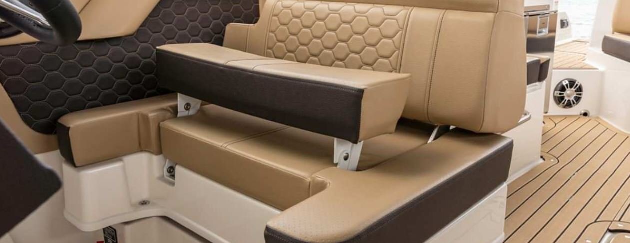 Flip things around with convertible portside companion and helm seats. For full flexibility no matter the size or make up of your group. At rest or running, you can set things up exactly to your liking.