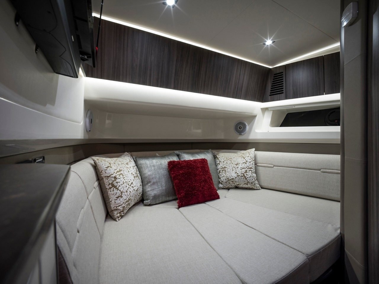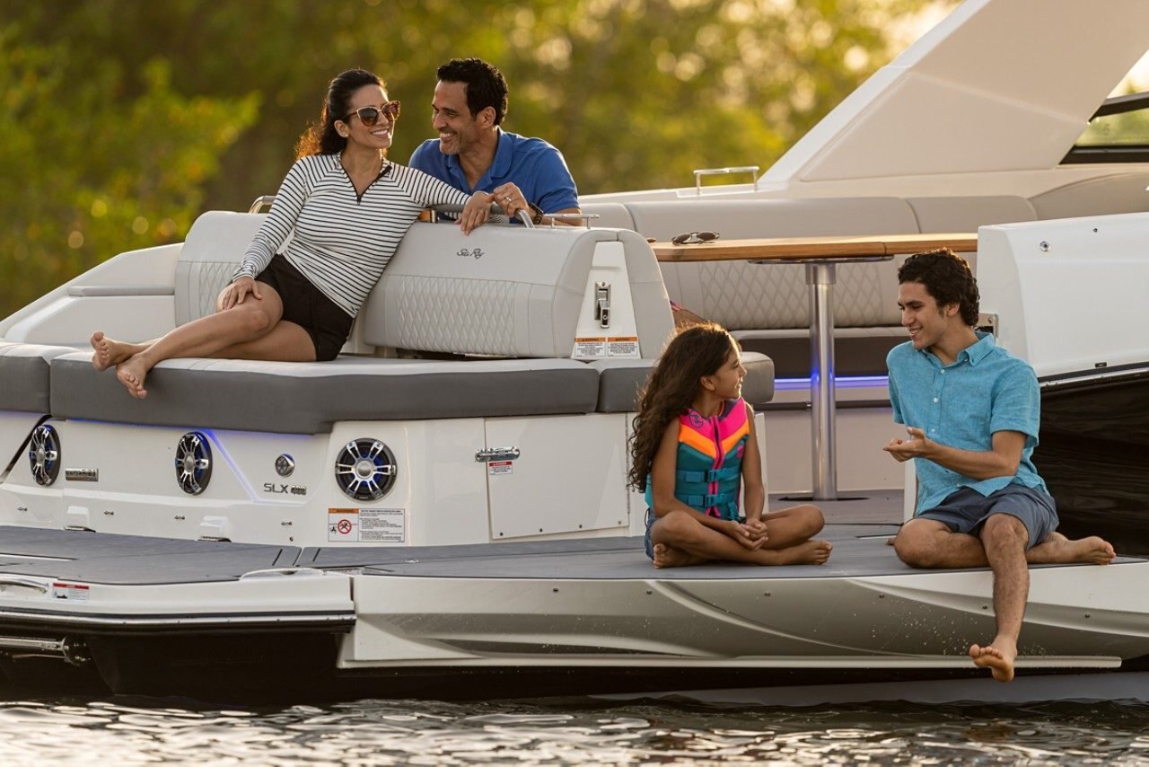 Winner of an NMMA Innovation Award, the SLX 400, "The Entertainer", combines peak performance, superior comfort, incredible versatility and style, and state-of-the-art technology. The result is more than a boat - it's a premium socializing environment. Every facet has been thoughtfully designed for maximum enjoyment, from the inviting cockpit and cabin, to the sleek digital helm, to the innovative fold-down swim terrace. All so that you and your friends can experience richer, fuller days on the water. Because the ultimate talent of an entertainer is making every guest feel right at home. |