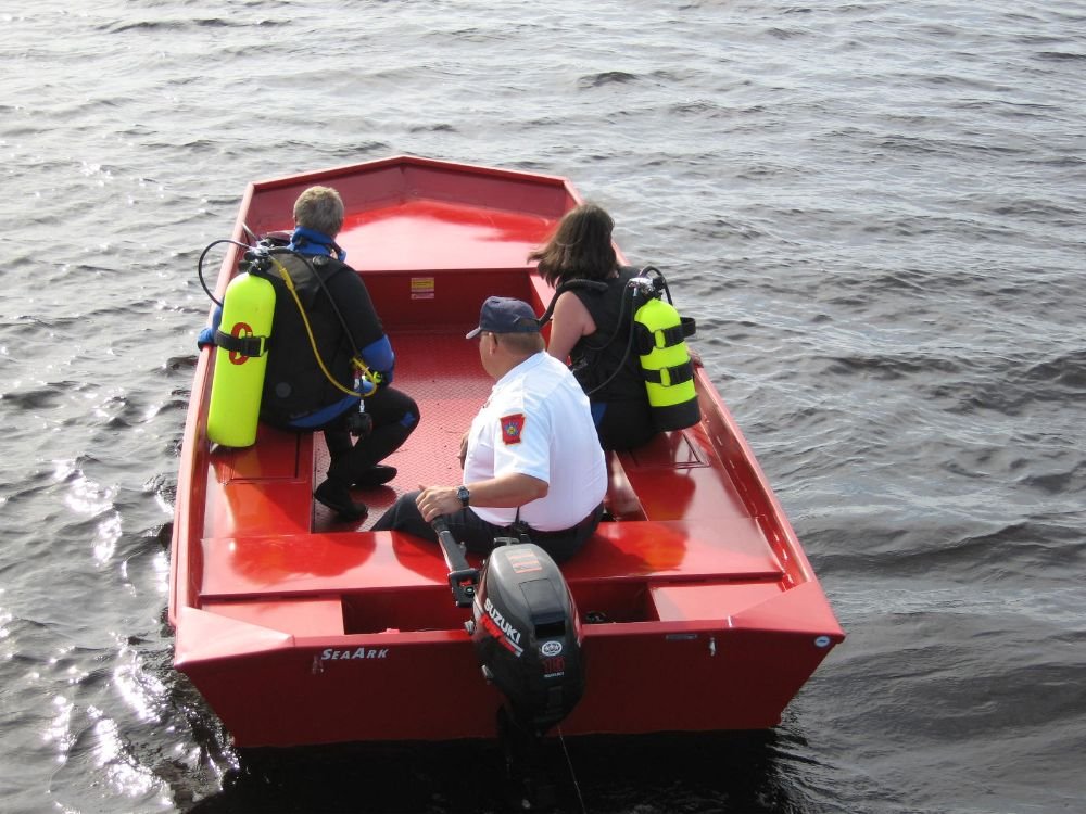 SeaArk's 1660 Rescue is a popular model among Search and Rescue (SAR) operators, fire departments, and sheriff's departments. Longitudinal boxes on both port and starboard sides offer a dual purpose application as storage areas for dive gear or medical equipment and seating of team members. |