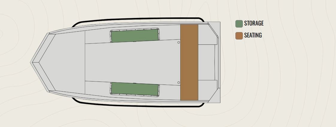• 3° All-Welded MV Tunnel Hull • Floored Area for Battery and Fuel Tank • Standard Paint • Rear Bench Seat • Two Lockable Storage Boxes • Set 12’ Rescue Rails • .125 Gauge Treadplate Floors • NMMA Certified • 5052 Aluminum • All Aluminum Floors and Decks • Stainless Steel Bow and Stern Eyes |