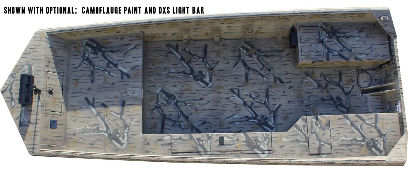 Being an Arkansas-based company, SeaArk knows duck hunting and what kind of boat it takes to withstand the abuse that comes from it. The DXS Series features EXT (Extreme Turn Technology) for quick maneuverability to avoid trees and stumps. Heavy .100 gauge aluminum construction. .125 gauge tread plate floor, over sized extruded accessory adaptable caprail, and a 3/16" extruded center keel, all combined to give this series the strength needed for those heavy timber hunts. |