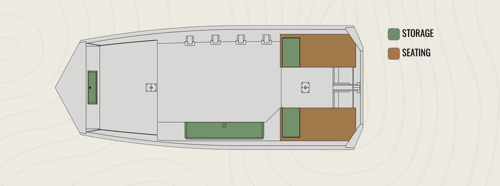 • 3° All-Welded Hull • Standard Paint • .125 Treadplate Floor • Extreme Turn Technology (EXT) • Built-In Gun Box • Oversized, Extruded Caprails w/Accessory Track & Rub Rail • Floored Area for Battery & Fuel Tank • Inside Drain Plug Access • Low Bow Deck • w/Anchor Storage • NMMA Certified • 5052 Aluminum • Electrical Package • All Aluminum Floors and Decks • Stainless Steel Bow and Stern Eyes • Split Rear Seats (52” & up have storage) • Two Stainless Steel Base Plate |