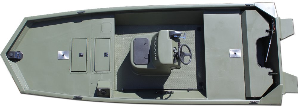When your number one objective is catching fish, you don't need a lot of unnecessary things getting in the way. You know how and where to catch a limit, so all you need is the right boat to get you there and back. Your time is valuable so if you're looking for a low maintenance boat, the Shadow 16 j is for you. Built the SeaArk way, the Shadow 16 j is constructed from .100 gauge marine grade aluminum. A .125 gauge tread plate floor will eliminate any popping or "oil canning." The caprails are over sized and extruded to strengthen the top portion of the boat and a 3/16" extruded center keel is used on the bottom. All of these features combined creates one tough boat. |