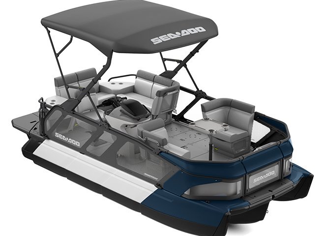 Switch bimini top Clear-view side panels Stern lounge Deck mat 4x corner table 1x adjustable table Driver seat with bolster BRP Audio System Glove box with dual USB port 12V outlet Full Swim platform Retractable boarding ladder Ski tow eye LinQ™ attachment points Under-deck storage compartment Console storage net Integrated anchor storage LED Navigation lights LED Courtesy light Integrated cleats (4) 650W Battery Generator