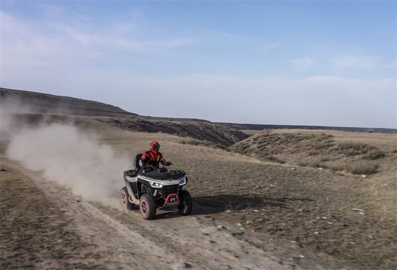 Dual A-ARM, Front Wheel Travel 8.3” (21cm), and Adjustable Gas Shocks