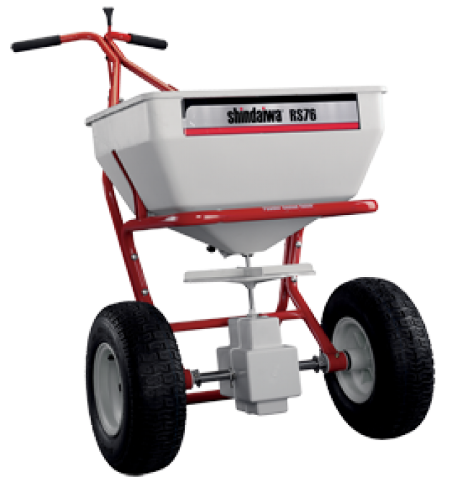 | Shindaiwa Spreaders are engineered for tough applications and built to last. All four models feature large rubber tires for effortless movement across all types of surfaces and are factory-calibrated to ensure consistent application of a variety of materials. Each one also has a rotary agitator to stir material. The RS40, RS60 and RS76 feature an epoxy-powder coated frame to fight corrosion and the RS76S features a stainless steel frame to withstand the harshest and last a long time. |