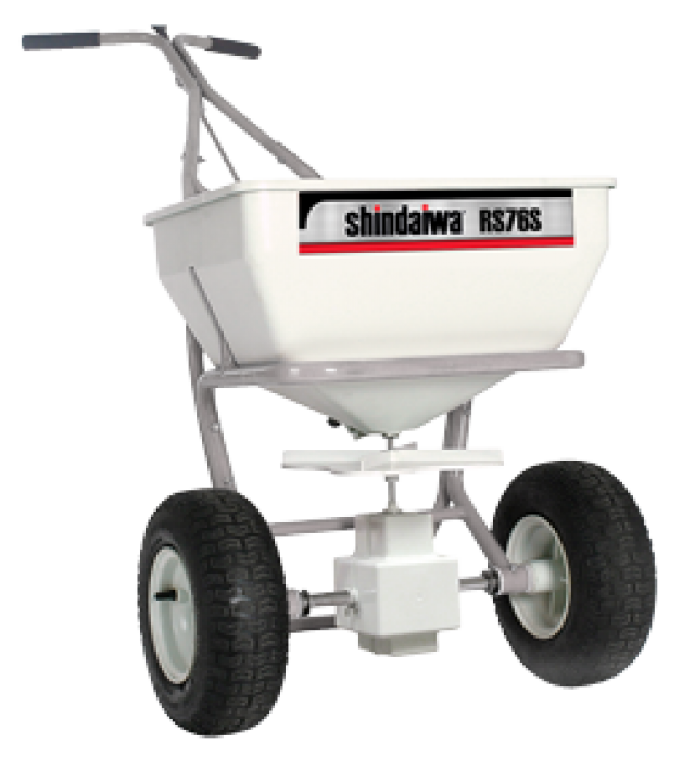 | Shindaiwa Spreaders are engineered for tough applications and built to last. All four models feature large rubber tires for effortless movement across all types of surfaces and are factory-calibrated to ensure consistent application of a variety of materials. Each one also has a rotary agitator to stir material. The RS40, RS60 and RS76 feature an epoxy-powder coated frame to fight corrosion and the RS76S features a stainless steel frame to withstand the harshest and last a long time. |