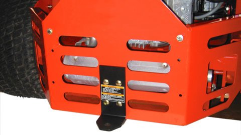 Three steel bars wrap-around the rear of the zero turn protecting the mower engine and operating components from damage.