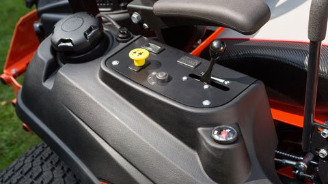 The deep cushioned 18-inch high-back seat, armrests and adjustable steering levers are built for convenient, comfortable operation.