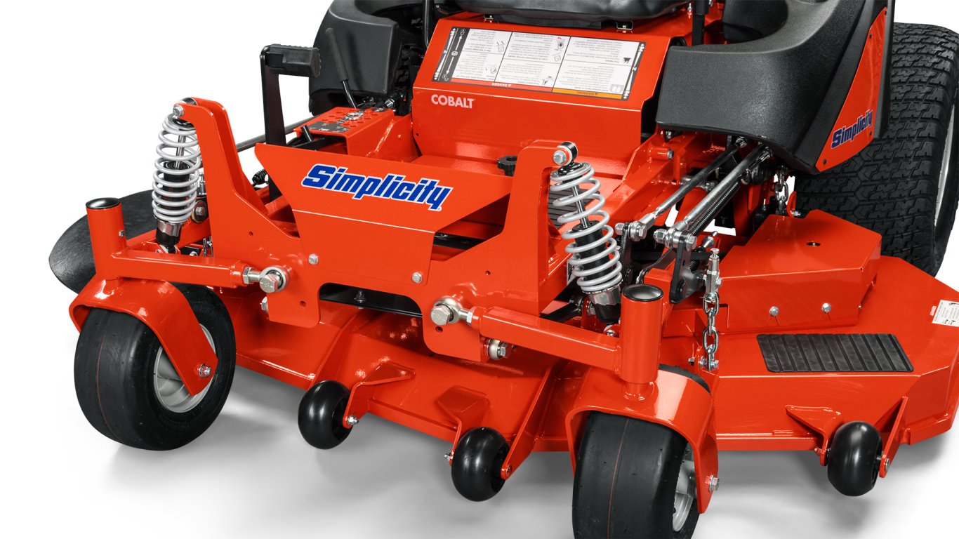 The Cobalt's 4-wheel suspension system reduces vibration to the chassis and operator, giving you a smoother ride at faster mowing speeds.