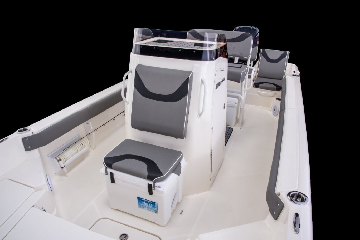 Deluxe Coastal White Lean Post w/ Fixed Backrest & 80qt Engel® cooler