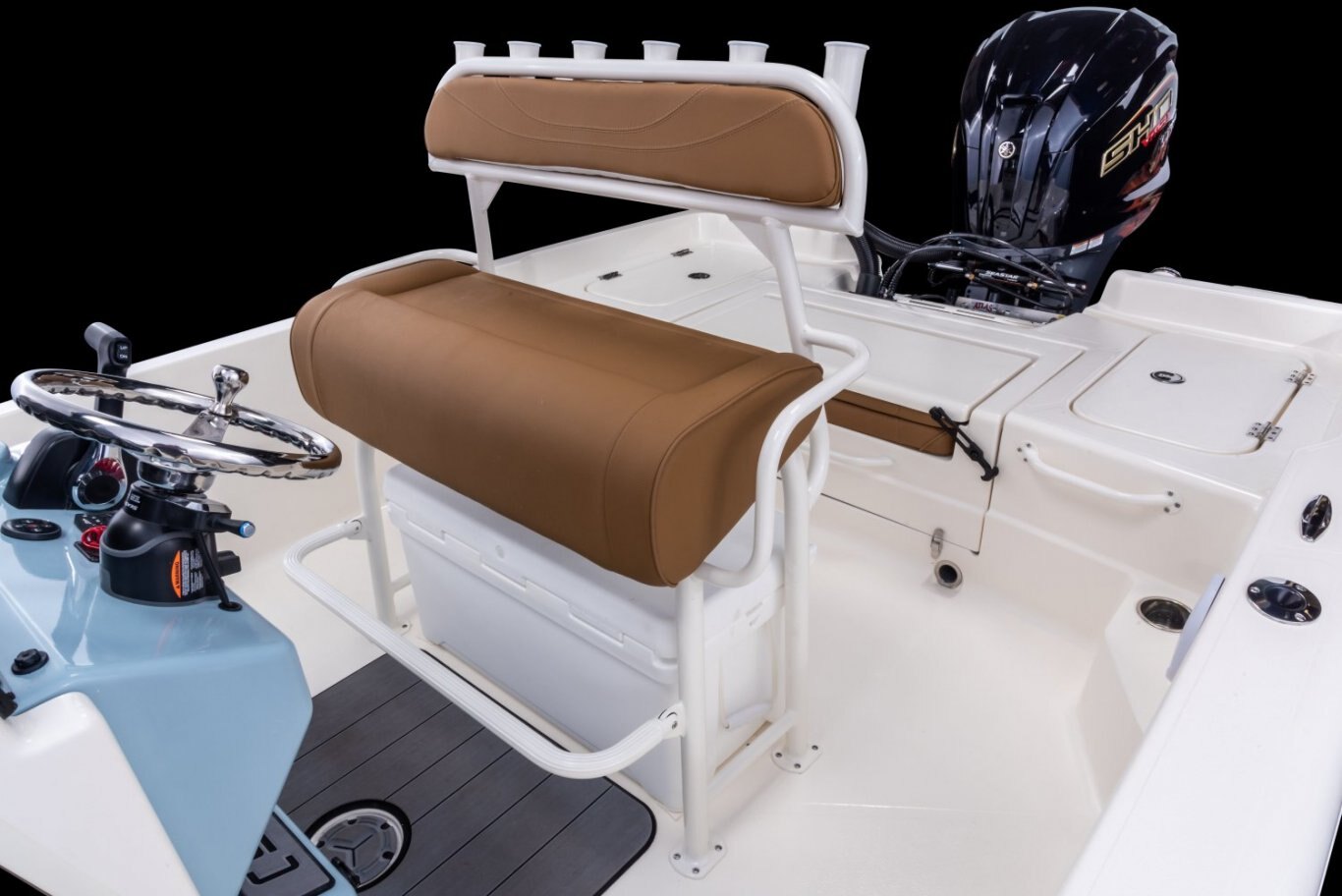 From skinny water to the open ocean deep water. The new SX2350 puts you there with comfort and style. Ergonomics rule the fishing side, with an abundance of storage, three large baitwells, and a command center that keeps you on top of everything. Style and efficiency rule the family side, with premium upholstery, a kicking sound system, and optional underwater accent lighting. The high gunwales, and a deeper, contemporary hull with a Carolina flare design, you and everyone on board will enjoy a safer and more stable ride. Expand your fishing territory and at the same time expand the fun with your family and friends. The SX2350 boat does great with both.