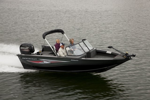 Nothing turns heads faster than the Millentia 192. This pro-style V-hull fishing boat is loaded with bells and whistles, starting with its racecar-inspired console with chrome accented speed, tach, volt and fuel gauges. The top-of-the-line, 21-gallon stern livewell is lighted, aerated, recirculating, and timed to better protect your catch, and for added convenience there’s a 18-gallon livewell in the bow. Lockable bow center rod storage with T-locks safely stores up to 8 rods, and you’ll fish in superior comfort from ergonomic, wood-free deluxe fishing seats.