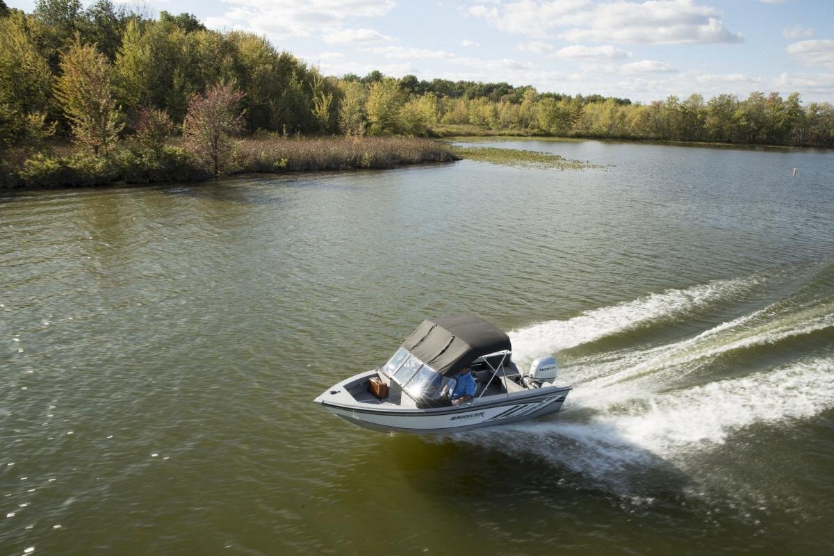 The 172 Osprey is truly at the top of its class with an all welded 17 degree vee bottom that delivers a solid yet soft and dry ride.  The Osprey is loaded with standard equipment like in-floor fish box, complete fisherman’s top and large bow livewell.
