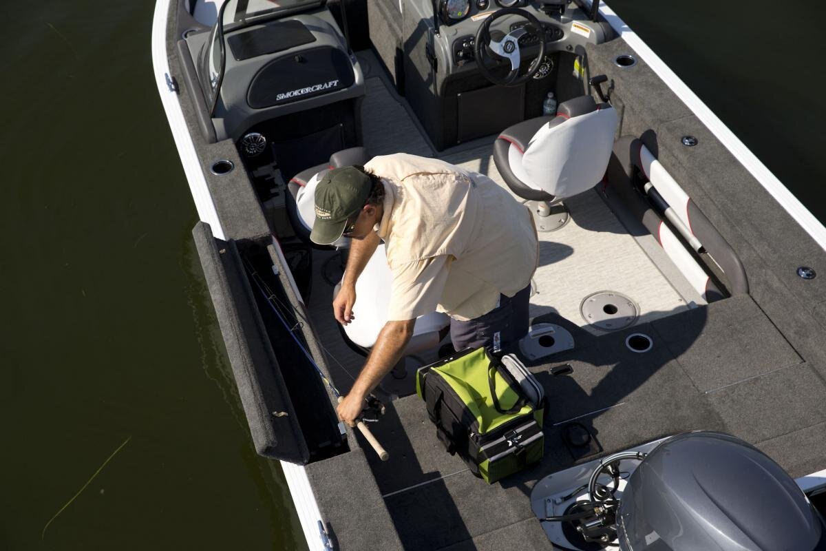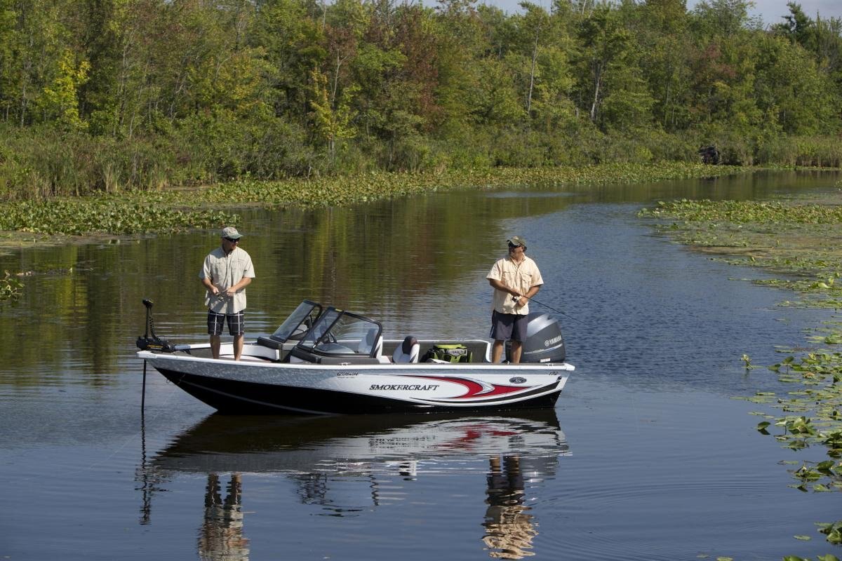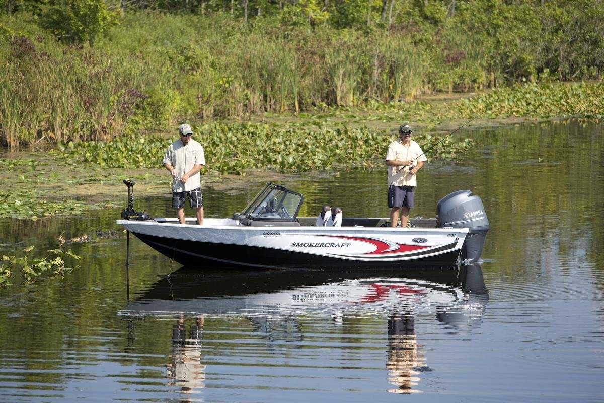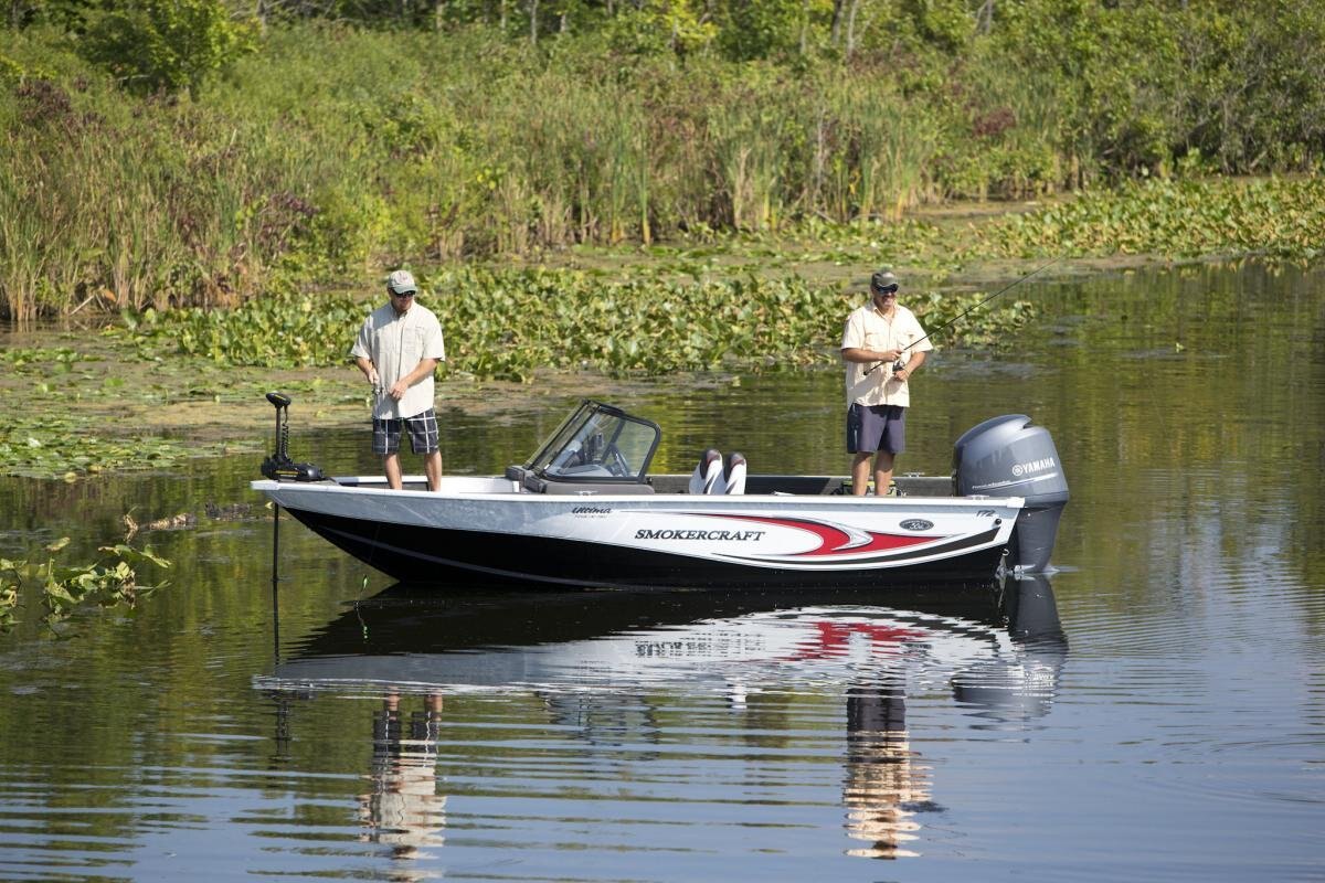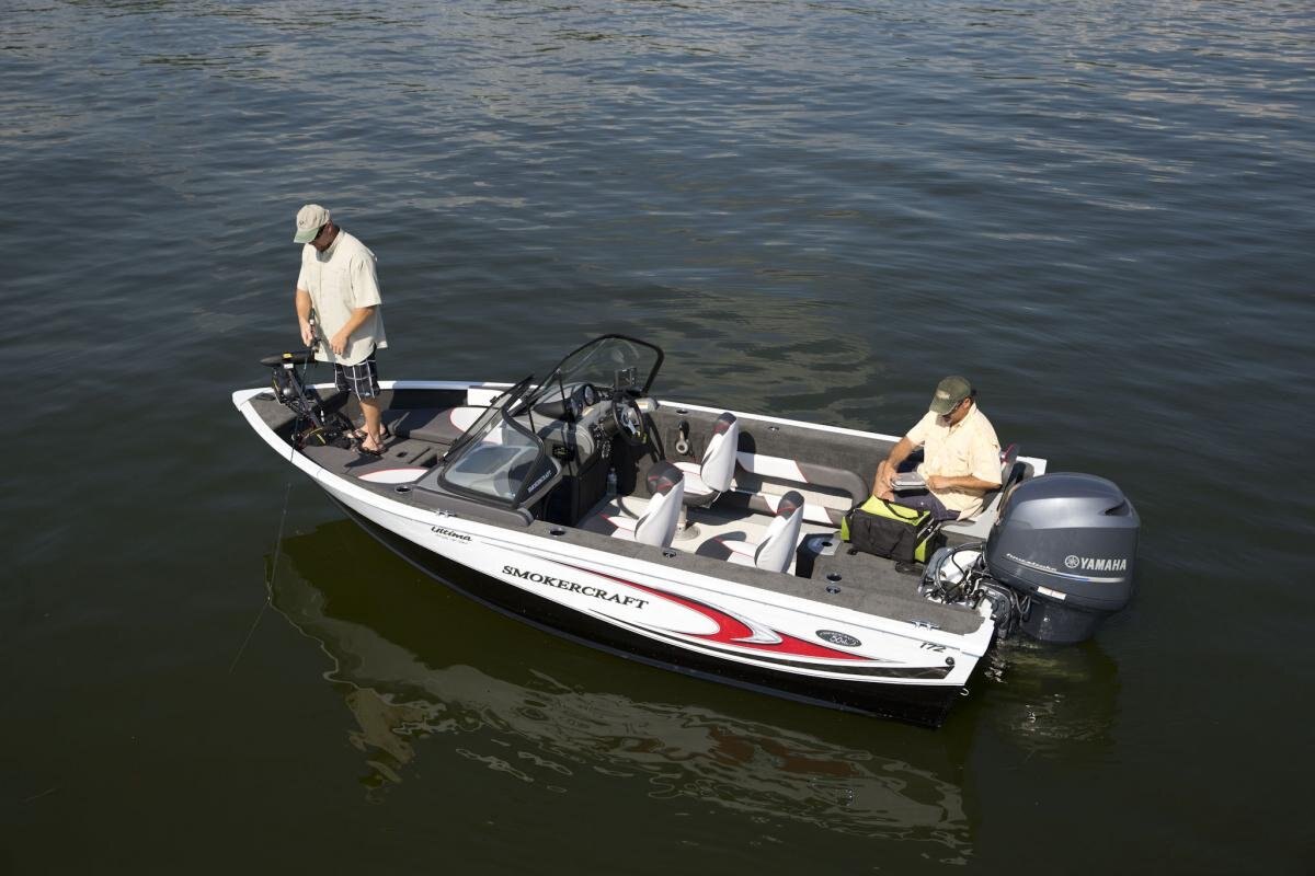 Loaded with fishing features, the 172 Ultima fishing boat from Smoker Craft is sure to keep everyone happy. Featuring flip up rear jump seats, this boat provides maximum seating while still keeping the treasured casting space that every fisherman needs. Now you can invite friends and family out and comfortably accomodate them, or head out for some much deserved time with just you and the fish.