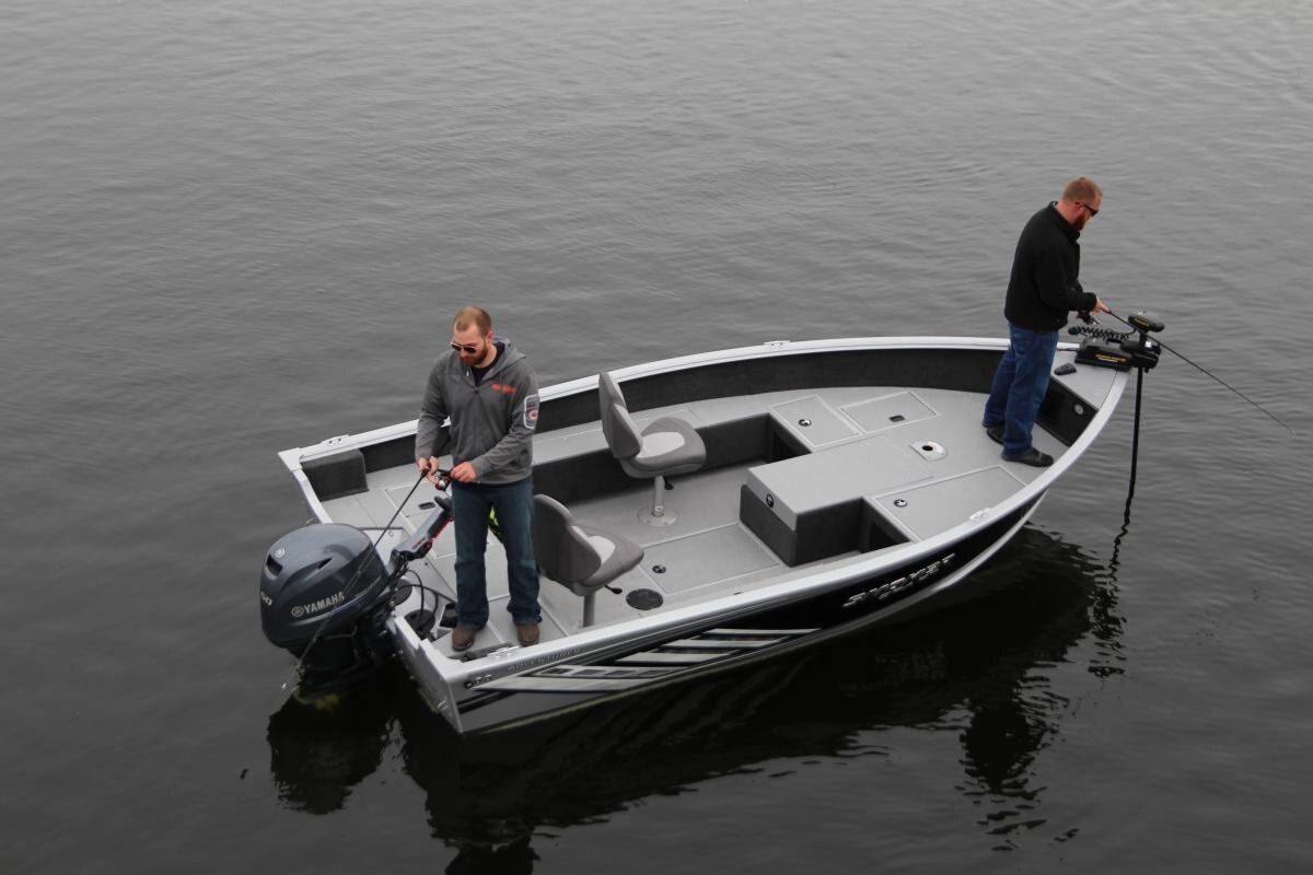 | With a length of 16'4" and a beam of 92" the 16 Adventurer T, this easily trailable boat, provides amply space for all your fishing needs. With center rod storage, in floor storage, integrated track system in the gunnel, a Jensen AM/FM Stereo with bluetooth, wood free fishing seats, and a stern livewell, the Adventurer has all the amenities that today's fisherman's craves. |