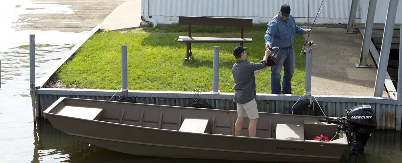 Available in 10, 12, 14 and 16 foot models, the Smoker Craft Jon series works as hard as those who live for hunting and fishing. Ideal for small water fishing applications, the Jon series is also perfect for duck hunting, traversing rivers in search of remote deer hunting haunts and also bow fishing applications.
