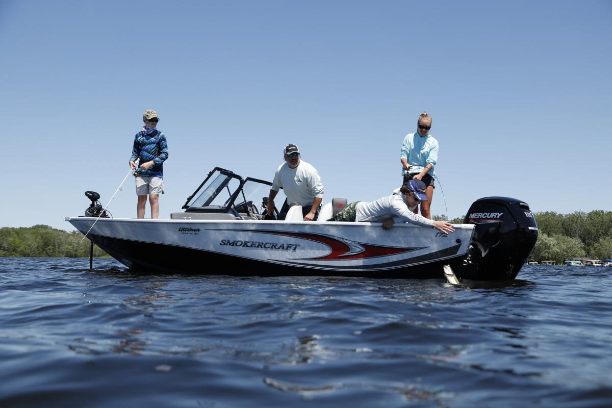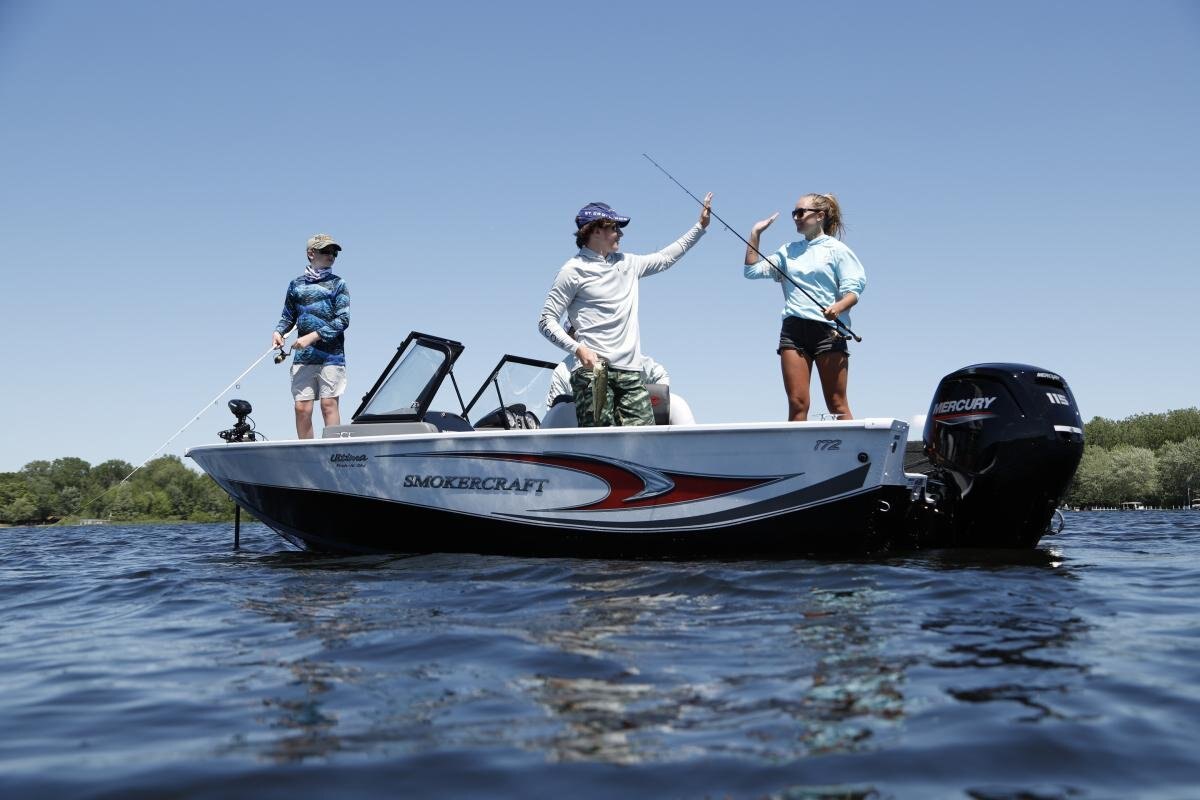 Tournament-ready. Family-friendly. Ultima, the ever-popular V-hull fishing boat from Smoker Craft, takes versatility to new levels, with its great fishing amenities, spacious layout, bow and stern casting platforms and two flip-up stern seats that are ideal for family fishing and watersports.