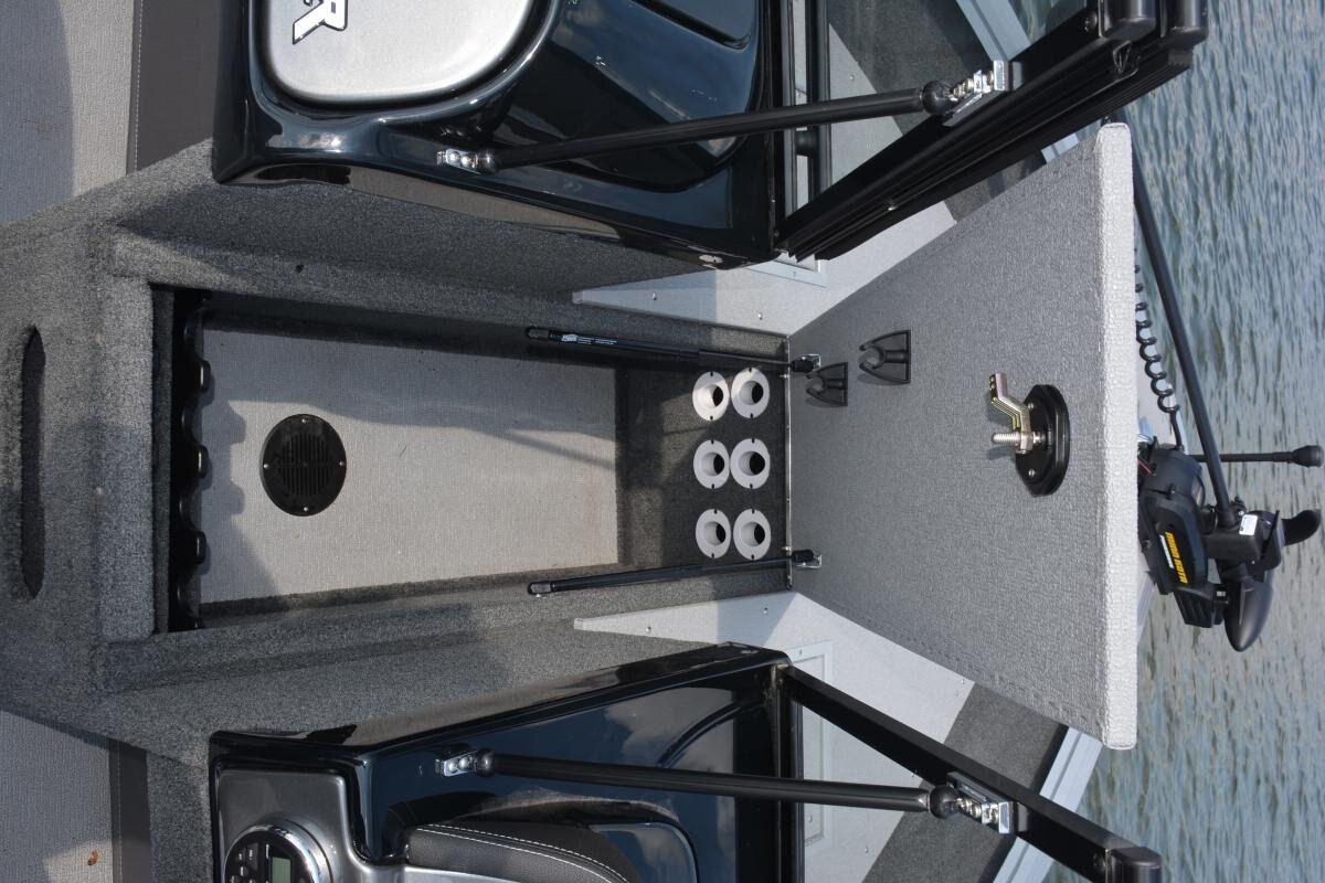 Pro Angler XL leads its class with feature-packed value in a deep, beamy hull that provides more interior space. The large, elevated bow casting deck conceals deep storage lockers for bulky gear and still has space for a FreshCatch livewell. The spacious main cockpit offers plenty of freeboard, and the Integrated Gunnel Track System makes it simple to mount downriggers, rod holders and other accessories wherever they’re needed. Lockable rod storage keeps expensive tackle safely out of sight when not in use, and its durable vinyl cockpit floor makes cleanups a snap.