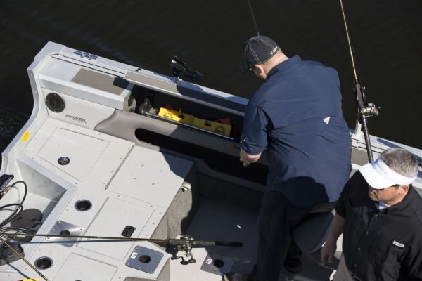 MISCELLANEOUS Integrated Gunnel Track System (IGTS) (N/A on Legacy Edition) Molded in Spray Rails Hyrdaulic Steering (182) Cleats (4) Circuit Breakers 12 Volt Power Point Top Loading Rod Boxes Passenger Side Glove Box Convertible Bow Casting Platform from Full Platform to Walk-Through Movable Seat Pedestals Extreme Tilt Steering (172) Twice Baked Urethane Paint