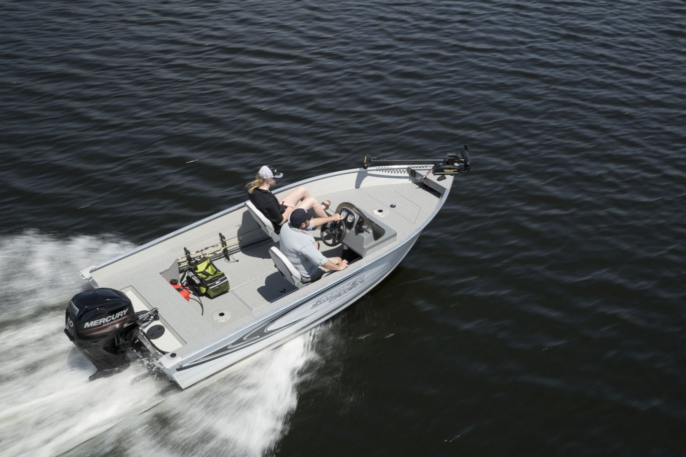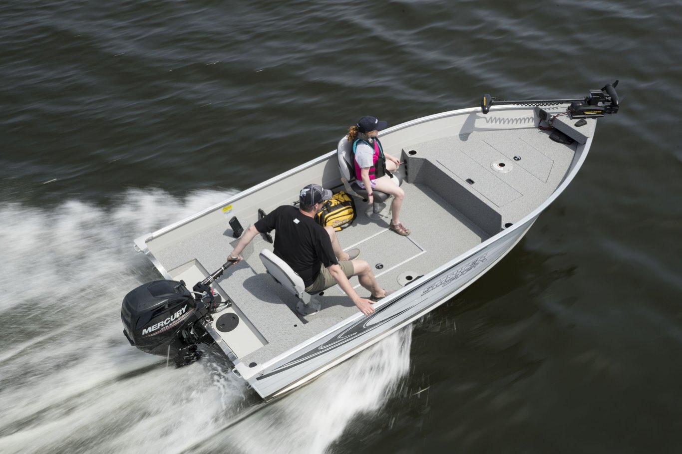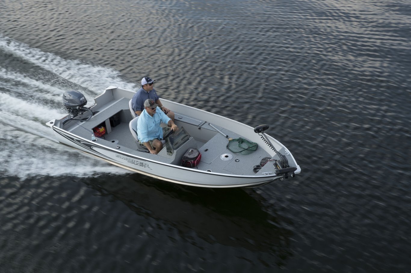 Who says smaller boats need to be short on features? Smoker Craft’s Angler series offers every essential in an easy-to-trailer package that fits in most standard garages. Available in a choice of three hull lengths, each Angler model comes with two wood-free fishing seats, a raised bow casting platform complete with in-floor storage, and our legendary FreshCatch aerated livewell system and lockable rod storage.  Optional upgrades like a factory-installed electric motor or a Humminbird Helix 5 GPS system let you personalize this rig exactly as you wish.