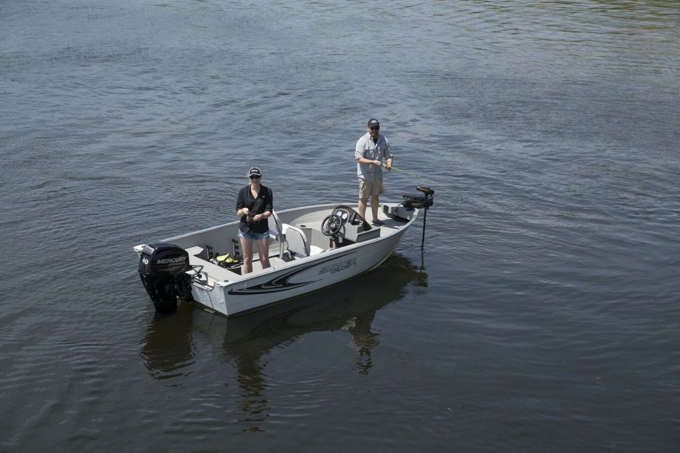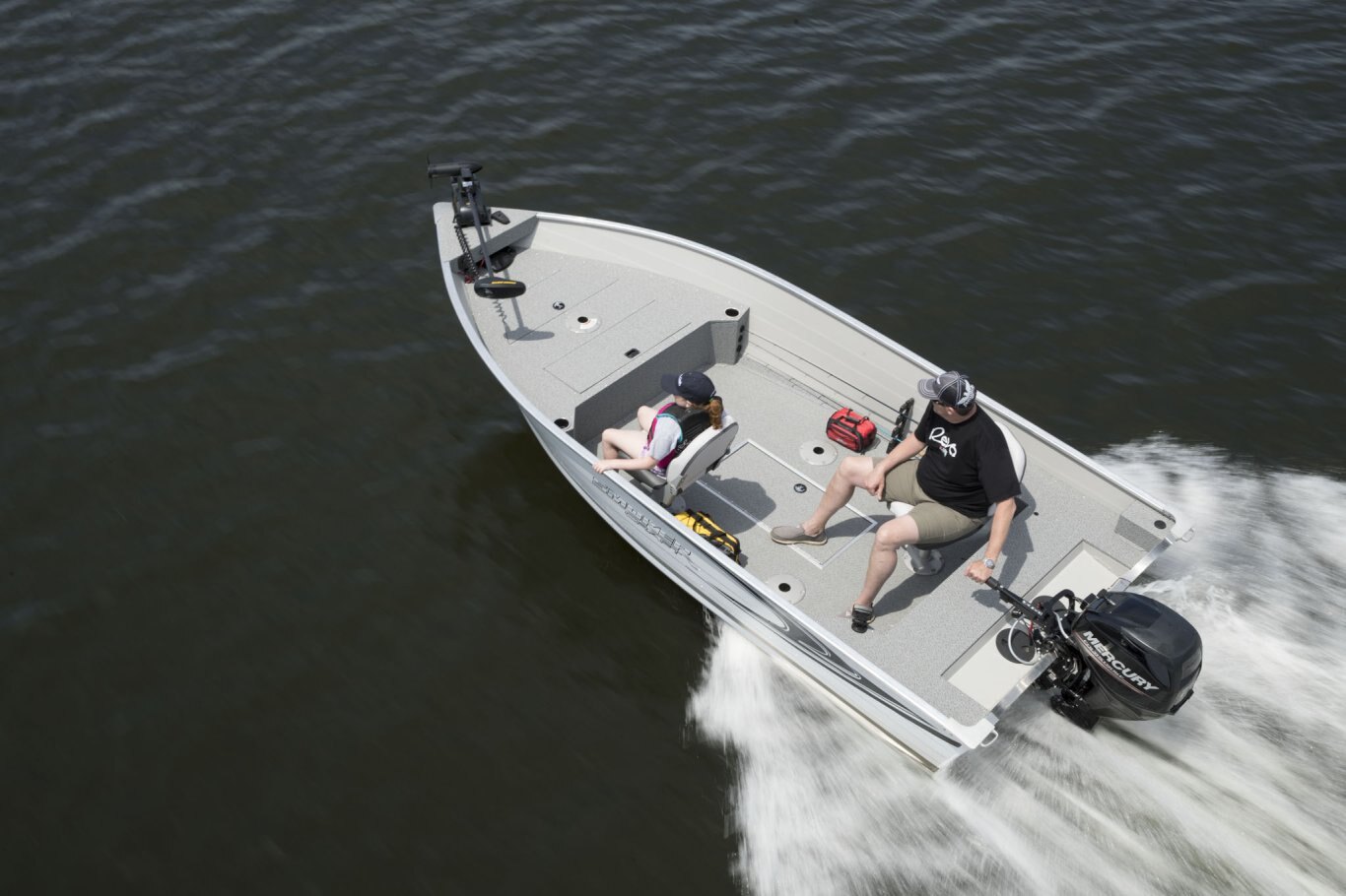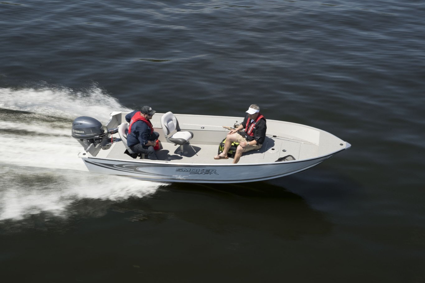 Who says smaller boats need to be short on features? Smoker Craft’s Angler series offers every essential in an easy-to-trailer package that fits in most standard garages. Available in a choice of three hull lengths, each Angler model comes with two wood-free fishing seats, a raised bow casting platform complete with in-floor storage, and our legendary FreshCatch aerated livewell system and lockable rod storage.  Optional upgrades like a factory-installed electric motor or a Humminbird Helix 5 GPS system let you personalize this rig exactly as you wish.