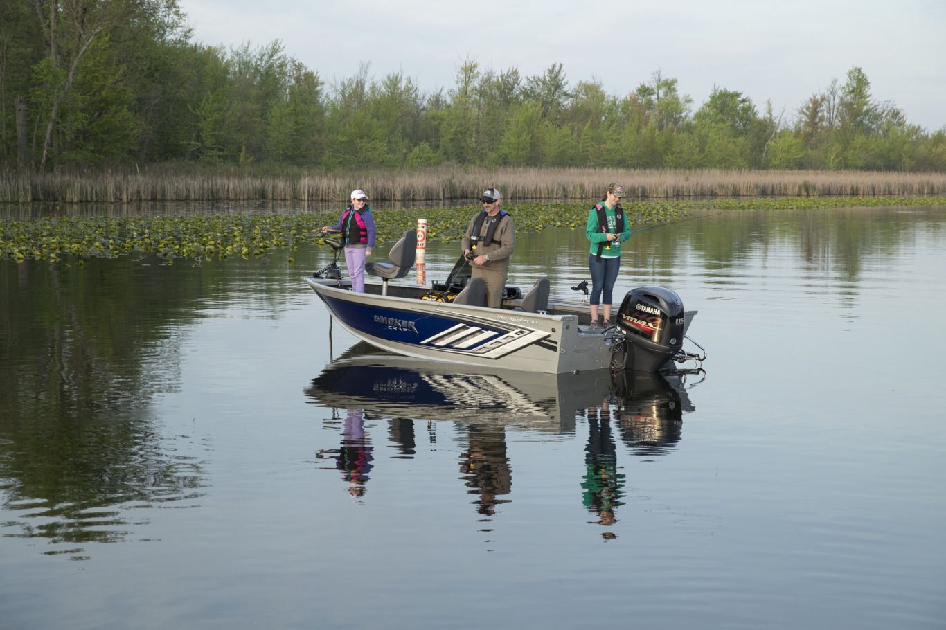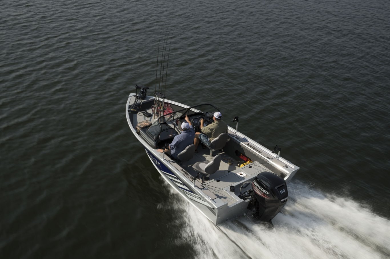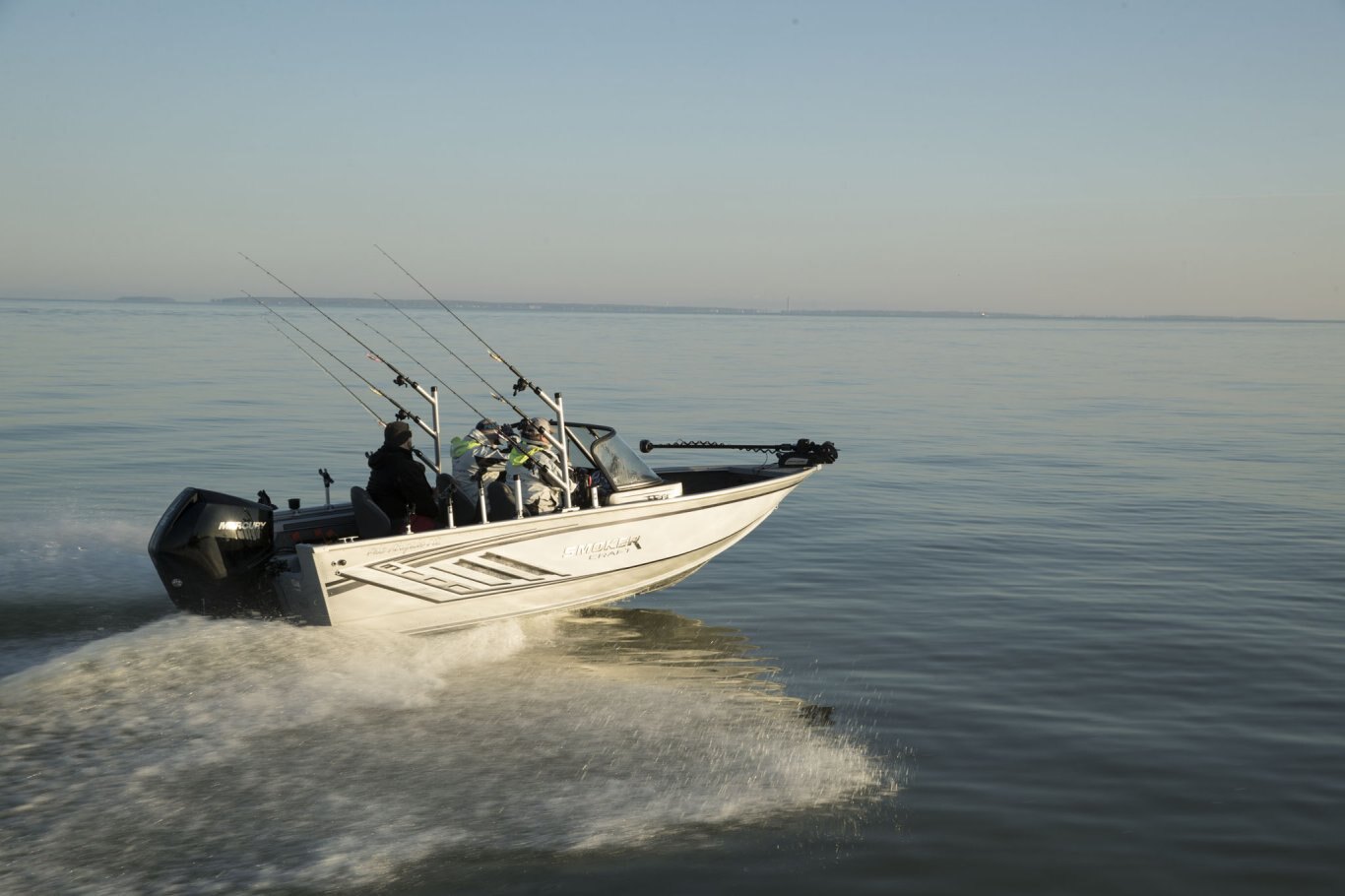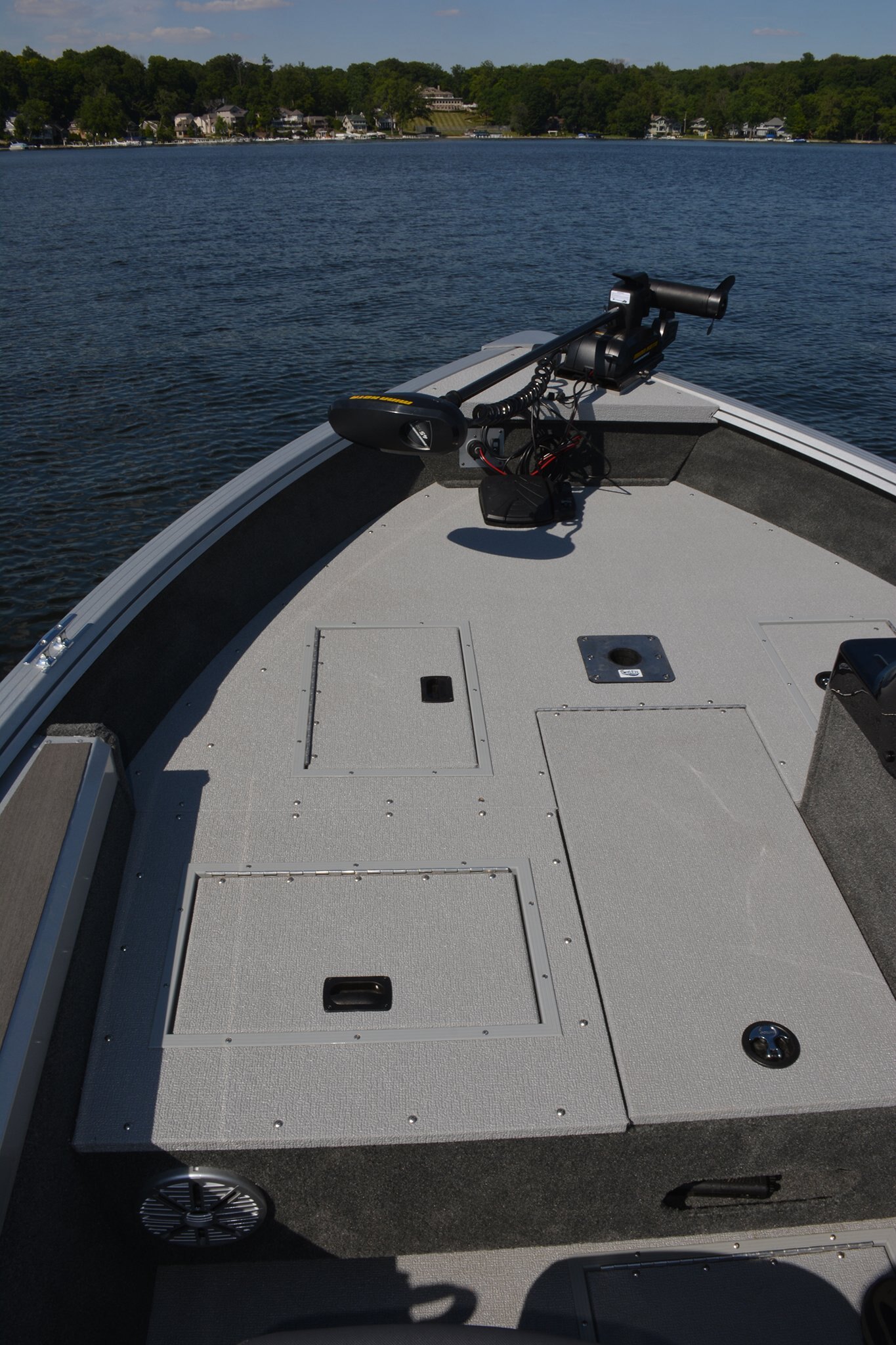 Pro Angler XL leads its class with feature-packed value in a deep, beamy hull that provides more interior space. The large, elevated bow casting deck conceals deep storage lockers for bulky gear and still has space for a FreshCatch livewell. The spacious main cockpit offers plenty of freeboard, and the Integrated Gunnel Track System makes it simple to mount downriggers, rod holders and other accessories wherever they’re needed. Lockable rod storage keeps expensive tackle safely out of sight when not in use, and its durable vinyl cockpit floor makes cleanups a snap.