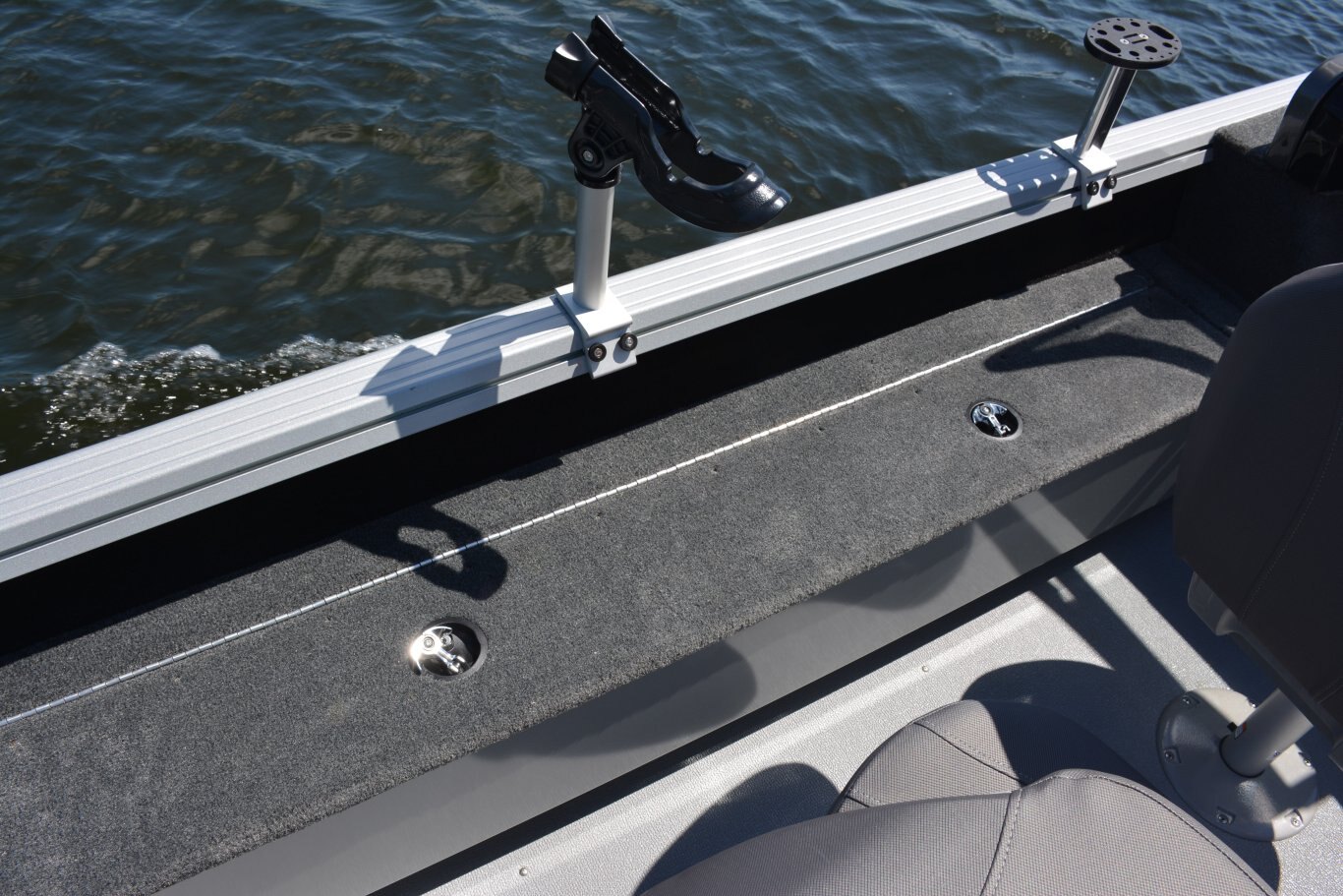 Deck Amenities AM/FM Stereo (N/A on 16') Lifetime Hull Warranty Trolling Motor Panel Lockable Bow Storage Integrated Gunnel Track System (IGTS) Lockable Center Rod Storage Wood Free Fishing Seats Full Vinyl Floor Aerated Stern Livewell