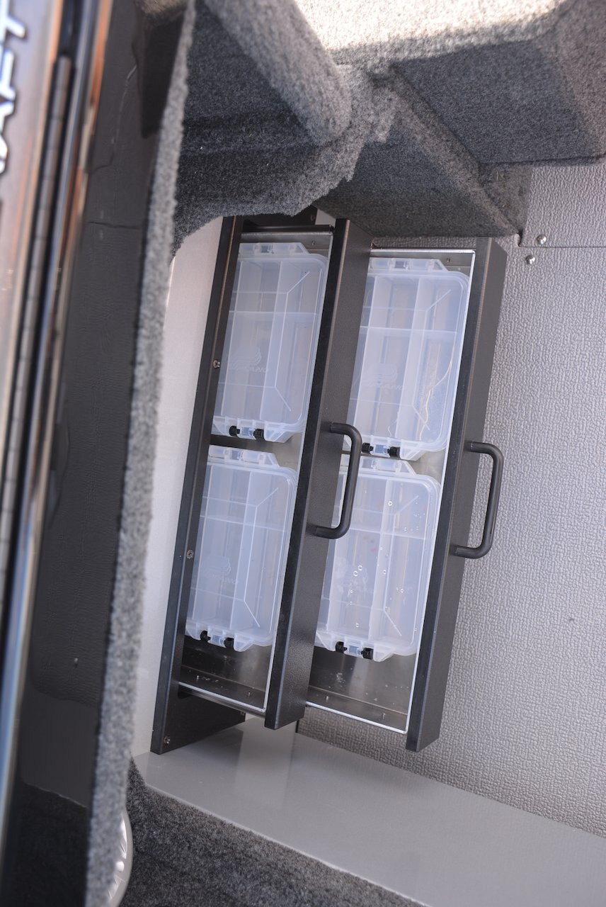 Deck Amenities AM/FM Stereo (N/A on 16') Lifetime Hull Warranty Trolling Motor Panel Lockable Bow Storage Integrated Gunnel Track System (IGTS) Lockable Center Rod Storage Wood Free Fishing Seats Full Vinyl Floor Aerated Stern Livewell