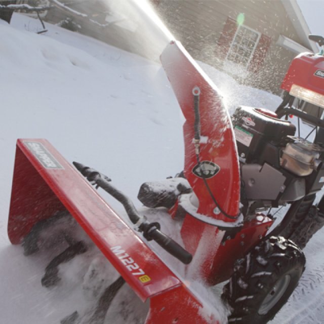 ![]() Durable, heavy-duty steel auger house and snow thrower chute are built to last. |