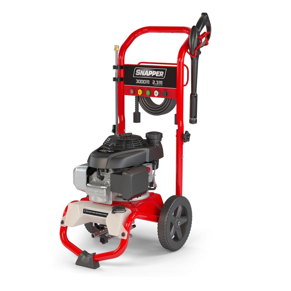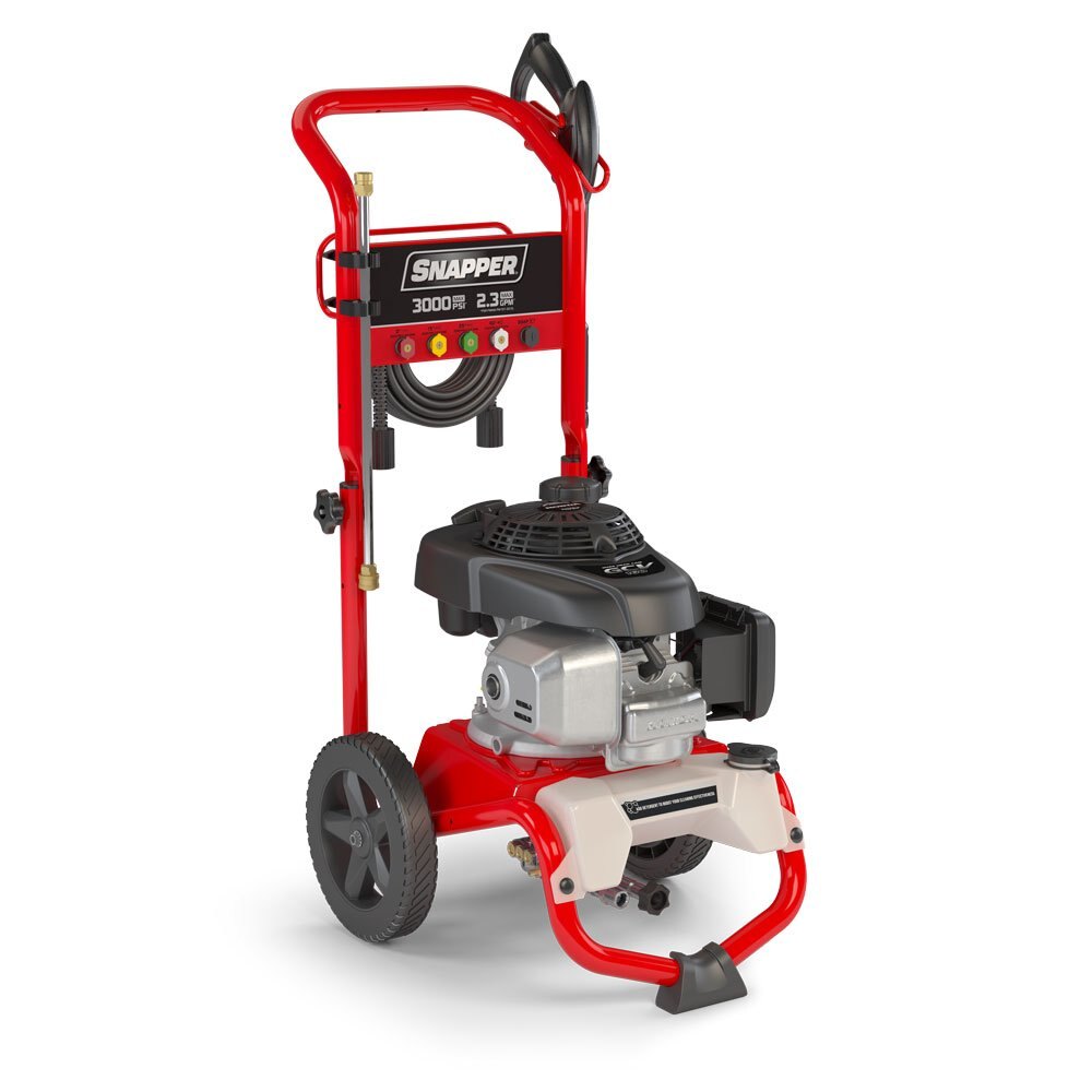3000 MAX PSI / 2.3 MAX GPM Gas Pressure Washer Easy to use. Easy to own. The Snapper® SP3000 Gas Pressure Washer was engineered with your cleaning needs in mind. Five convenient spray tips allow you to demolish dirt off concrete, patio furniture, vehicles and more. Featuring a Honda GCV160 engine and an axial cam pump, this pressure washer packs enough power to take on your cleaning projects with ease. |