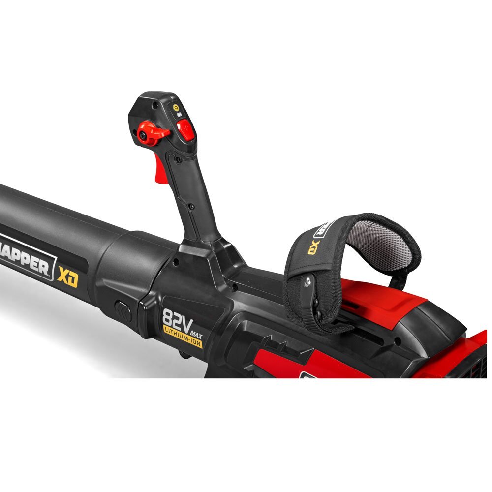This leaf blower gives homeowners and professionals the step up they are looking for when it comes to power and operating comfort. The Snapper 82V Leaf Blower with PowerGrip is hassle-free and comes with an adjustable battery harness to alleviate fatigue on your arm and back. Simply slide your arm through the arm strap and pull the trigger to start it up. For an extra boost of power, we’ve added Turbo Mode to make your tough job easier on you. This unit can be used with the Briggs & Stratton 2.0, 4.0, or 5.0 82V lithium-ion battery & rapid charger.