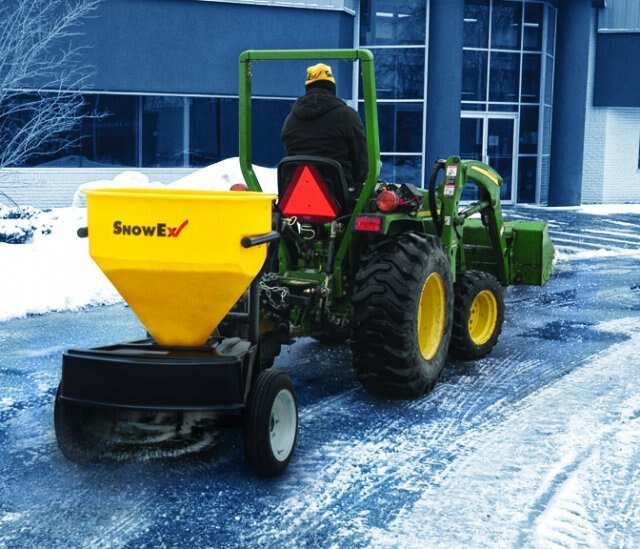 SnowEx’s new ground-driven SP-1225G is designed to tow behind compact tractors, ATVs and utility vehicles. It spreads up to 40 feet wide for various off-road applications, or the sidewalk deflector can be used to limit the spread pattern over sidewalks. It’s not just a new product from SnowEx...it’s the new sidewalk solution.