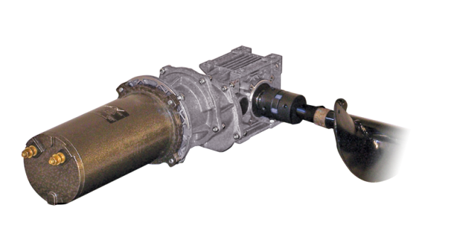 - Totally self-contained patented 12-volt electric drive/transmission sealed unit