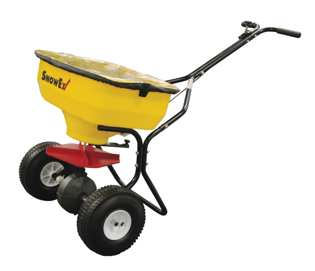 SnowEx’s SP-65 is a professional-duty broadcast spreader at an entry level price. It spreads bagged rock salt and pelletized material up to 20 feet wide. Plus, the SP-65 walk behind spreader includes a heavy-duty transmission and large pneumatic tires for easily pushing over snow, slush and ice.