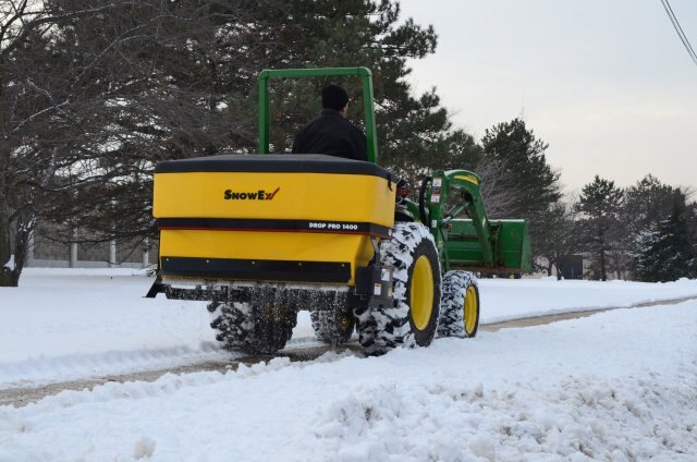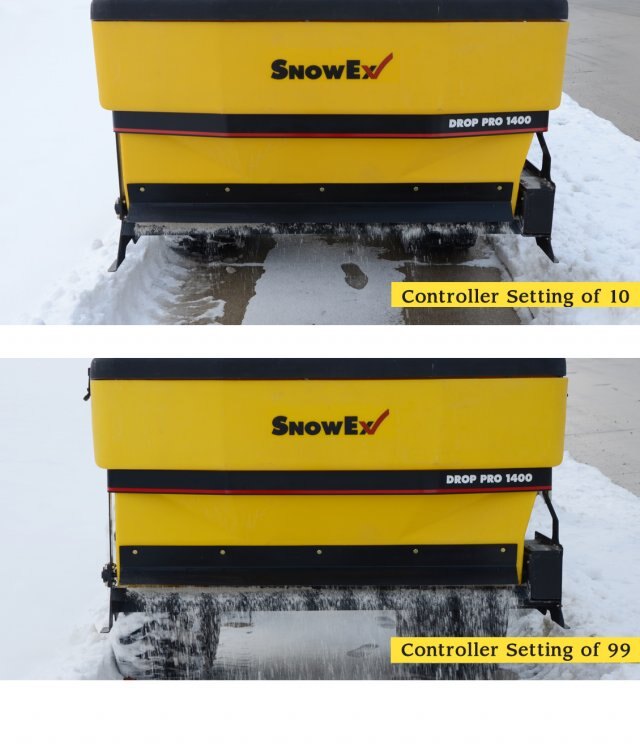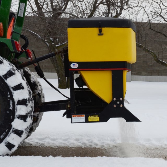 Our Drop Pro Series spreaders are ideal for campus parking lots, parking structures, sidewalks and many other off-road applications. The 14 cubic-foot capacity unit is capable of spreading bagged deicing material as well as bulk rock salt. A variable-speed distribution shaft offers flexibility in application rate.