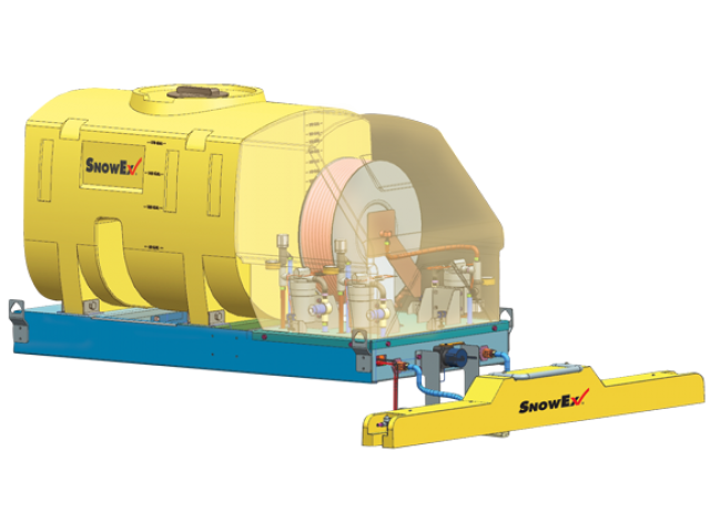 The electric-powered VSS-2000 de-icing sprayer from SnowEx has a 200-gallon capacity. It comes with 3-position de-icing nozzles and a spray wand, which are all managed by a multi-zone controller. This setup is perfect for any contractor looking to offer liquid anti-icing and de-icing services.