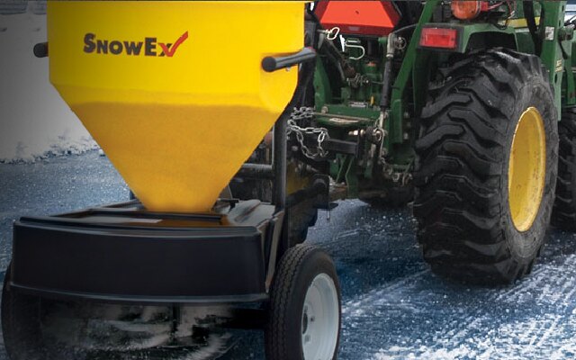 Ground Drive The SnowEx® SP-1225G is a ground-drive spreader designed for sidewalks, parking lots and other off-road specialty applications. The unit spreads bagged rock salt and chloride pellets, and is equipped with a lawn-and-garden style hitch for towing behind compact tractors, ATVs and utility vehicles. Hit The Ground Running Simple and efficient, the SP-1225G ground drive system is comprised of a heavy-duty transmission and large, narrow pneumatic tires that will maintain maximum traction on snow and ice. | ||||||||||||||||||||||||||||||||||||||||||||||||