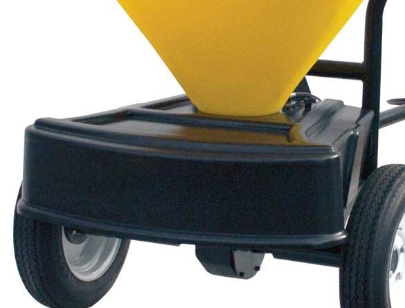 The spreader’s adjustable spinner fine tunes the spread pattern and is constructed of stainless steel to resist corrosion. |